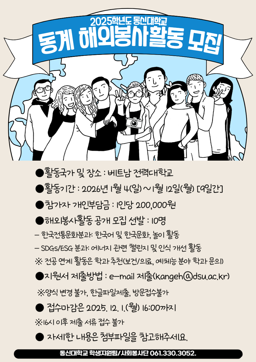 [학생지원팀] 2025학년도 동계 해외봉사활동 모집(~12/1)